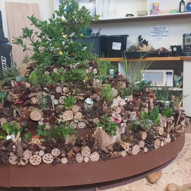 Everything from gumnuts and banksia cones to paperbark and dead heads off plants in our community garden.